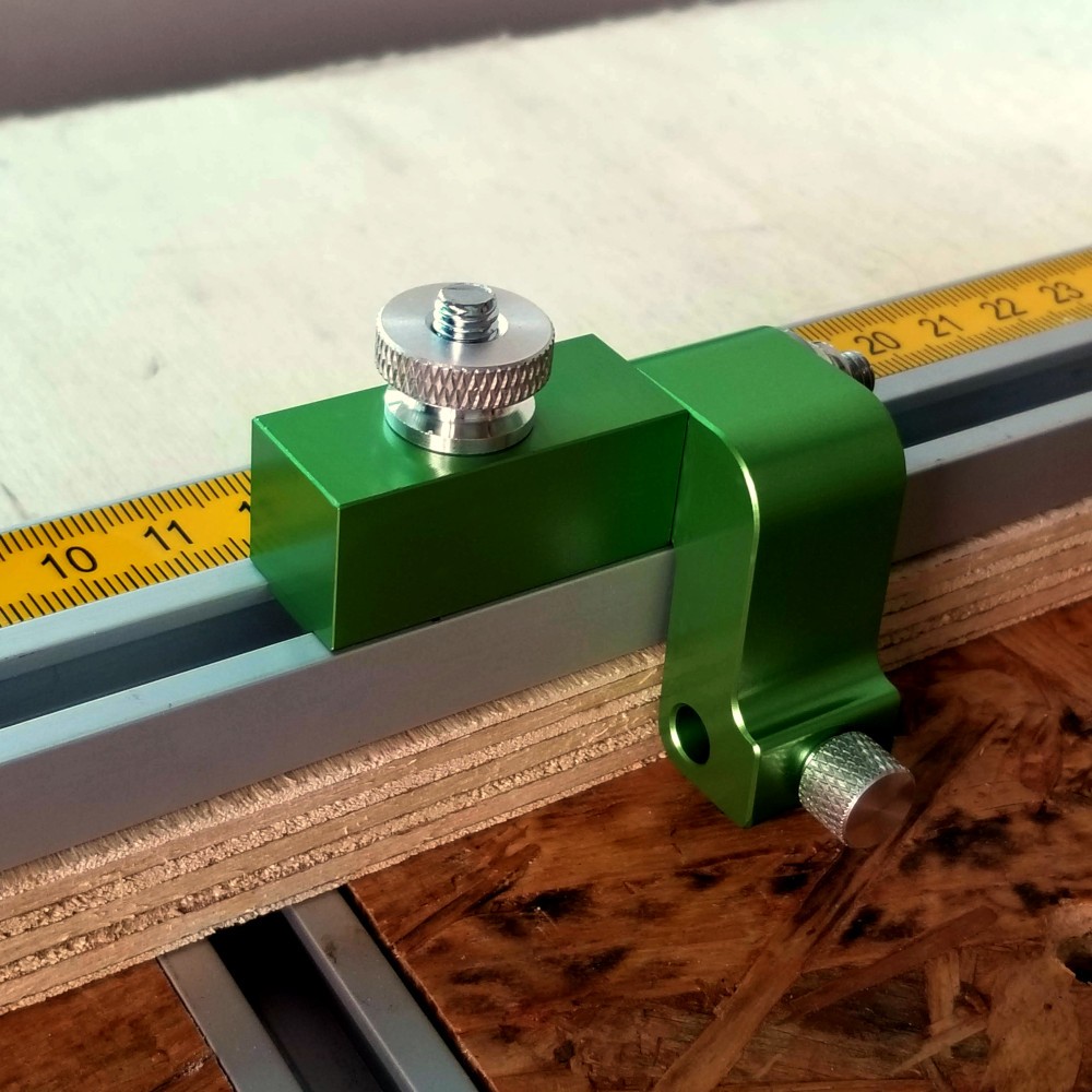 Obracany ogranicznik (znany też jako zderzak, stoper) to jeden z najbardziej przydatnych elementów w warsztacie wyposażonym w profile T-track. Jest to podstawowe narzędzie do uzyskania powtarzalności podczas cięcia lub frezowania.