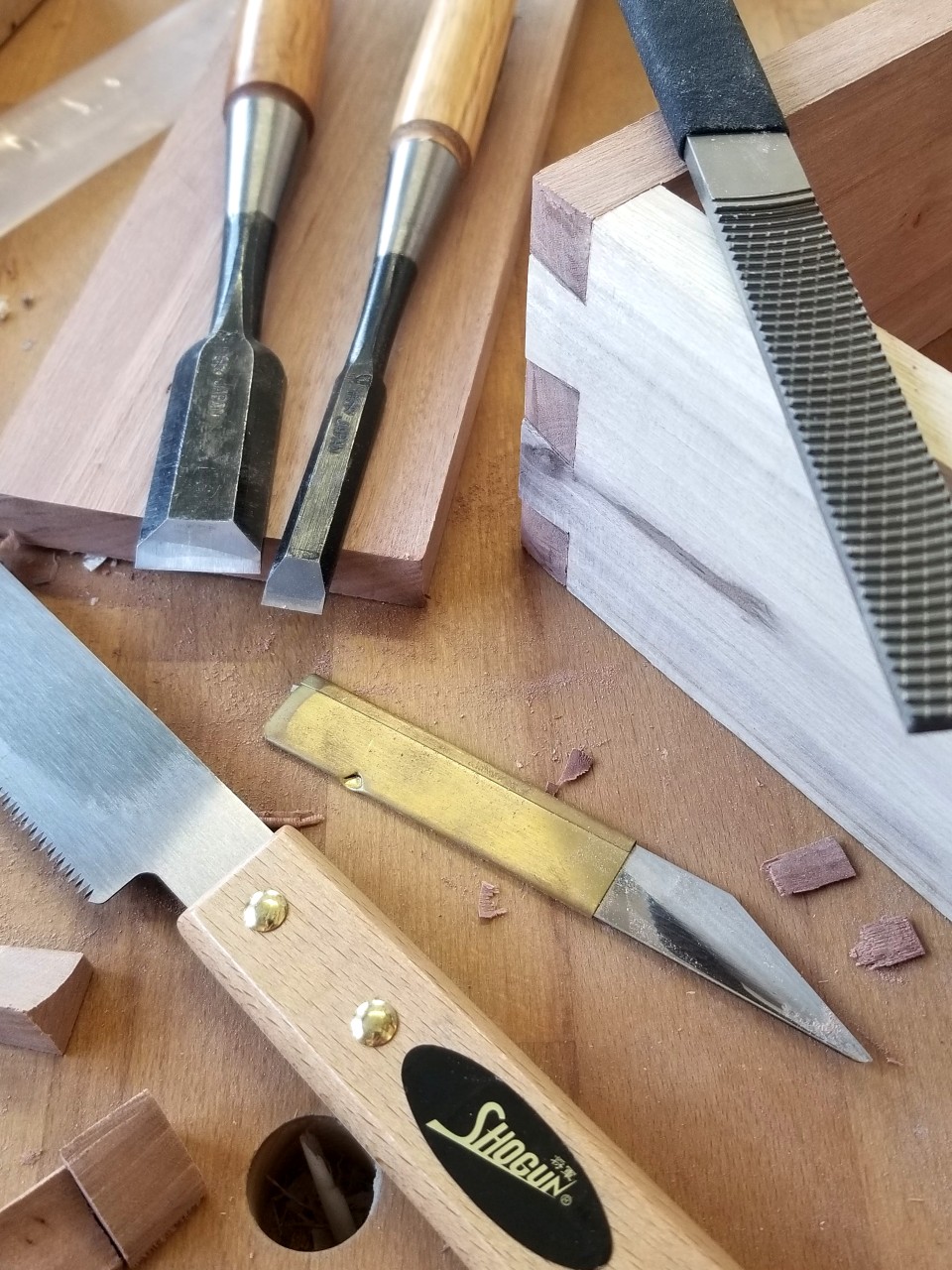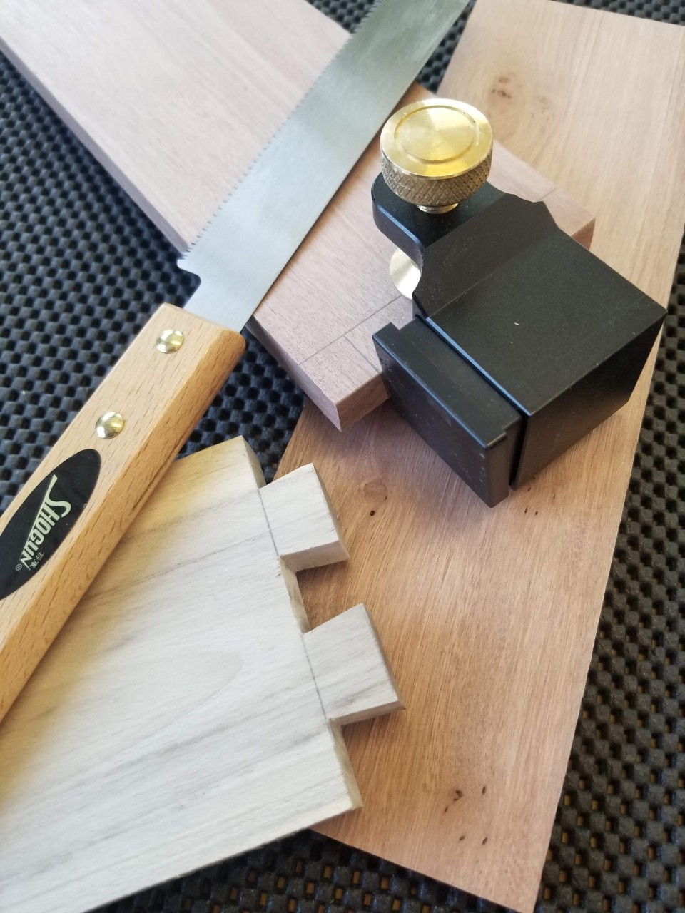Dovetail joints require an exceptional skill that adds incredible value and durability to your woodworking projects. Start with simple test joints using a hand saw, marking gauge, saw guide, and wood chisels. Practice makes perfect!