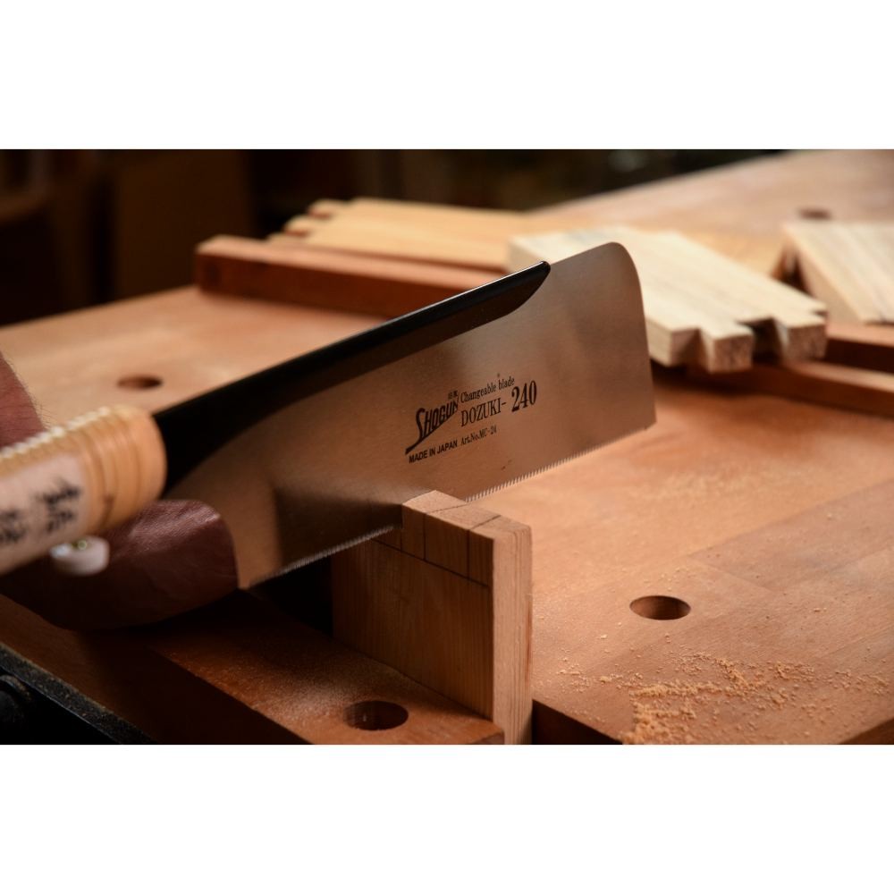 A hand saw is a basic tool in any woodworking shop. When making joints, you should equip yourself with a thin-bladed saw featuring fine teeth (a thin kerf) for precise cuts. Japanese saws will be invaluable helpers here, as they are specialized for creating complex, precise wood joints. A dozuki saw (e.g., MC24) or a kugihiki (FL150) is highly recommended for this task.Precise "freehand" cutting requires practice and patience. To make this process easier, angled saw guides come to the rescue, such as the magnetic dovetail saw guide (WN0008).