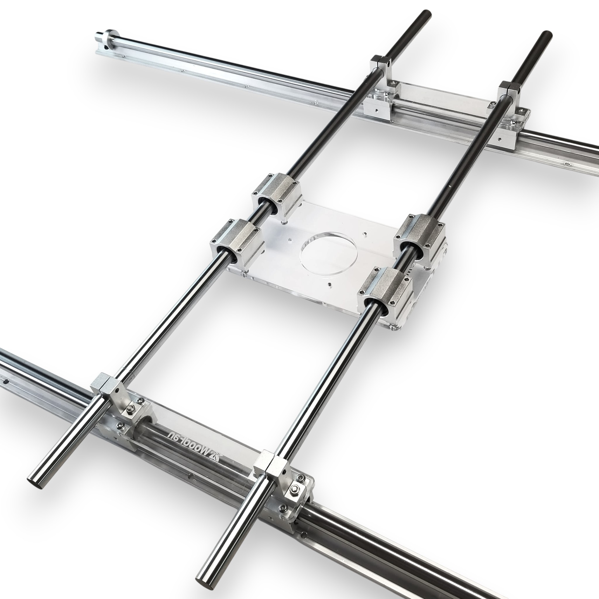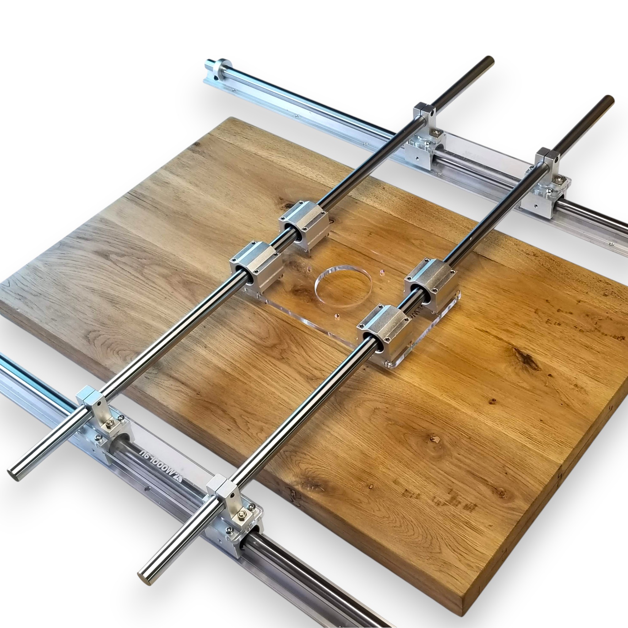 Planer składa się ze specjalnych sanek do montażu frezarki, które płynnie przesuwają się po prowadnicach liniowych w osi X i Y dzięki systemowi bezobsługowych łożysk. Konstrukcja planera gwarantuje frezowanie na stałej wysokości, co pozwala na idealne wyrównanie materiału do tej samej grubości na całej powierzchni.