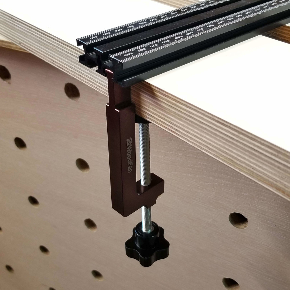 Ergonomiczny i wygodny docisk stołowy do szablonów do frezowania PREMIUM - solidny sposób unieruchomienia szablonu na czas frezowania do obrabianego materiału. Konstrukcja wykonana jest z anodowanego aluminium, śruba dociskająca ze stali.