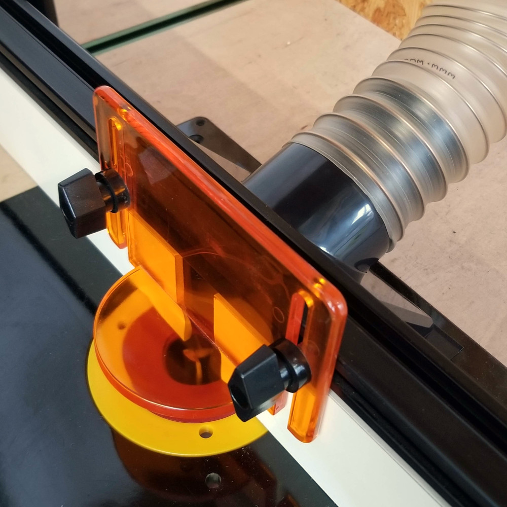 Proste, wytrzymałe akcesorium do montażu węża odciągowego przy przykładnicy wzdłużnej do frezarki stołowej. Pasuje do węży o średnicy 63mm.